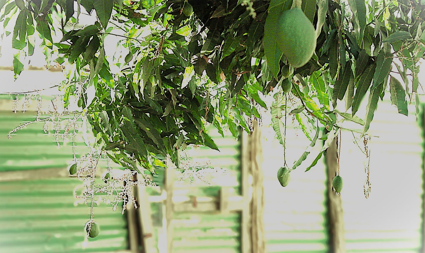 During the dry months when creatures and humans endured and small green plants withered and died, enormous living pumps drew life-giving liquid from deep within the earth. They drew it up many metres, through their dense branching frameworks into hundreds of thousands of small green factories. There, light, liquid, and air were combined to manufacture hundreds of confections filled with juicy pulp, the fruit of endurance. Rest was sweeter in the shelter of these great living plants.